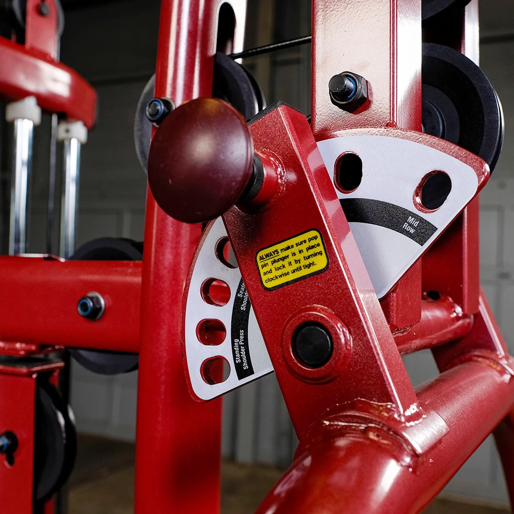Uniek aan dit toestel zijn de 5 trainingsstations: multi-press, lat pulldown, hoge pulley, ab crunch/mid pulley, leg extension/leg curl, en seated row/lage pulley.