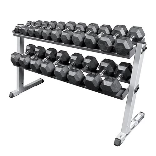 Houd je trainingsruimte netjes, opgeruimd en vooral veilig met de Body-Solid Pro Dumbbell Rack met 2 lagen. Deze rack is zeer stevig gebouwd en verplaatst zich niet tenzij jij het wilt.