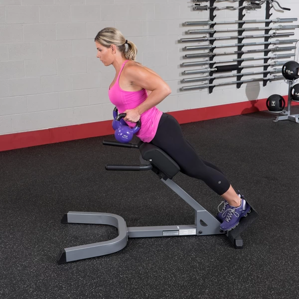 De 45° Back Hyperextension van Body-Solid is een combinatie van een inverted back extension en oblique flexor die in een positie van 45° staat. Door die hoek kan je het maximale uit je training halen.