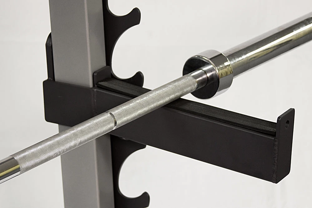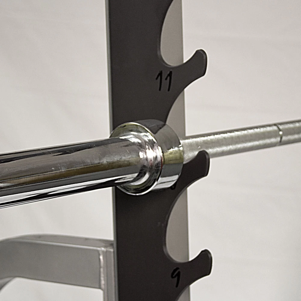 De stabiele SDIB370 staat in een hoek van 7 graden, waardoor het rack het natuurlijke hefpatroon van je lichaam volgt. Het Squatrek van deze SDIB370 combo is voorzien 14 posities voor het afleggen van de halterstang en 2 spotterarmen zodat je veilig kan trainen.