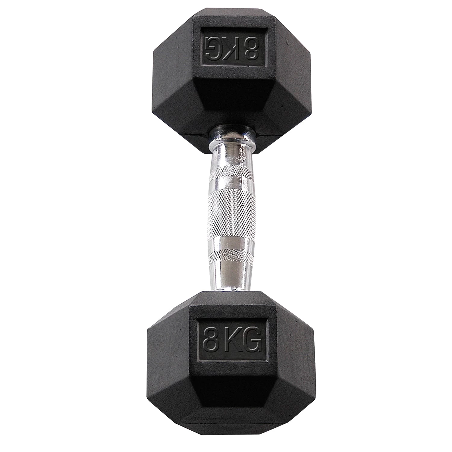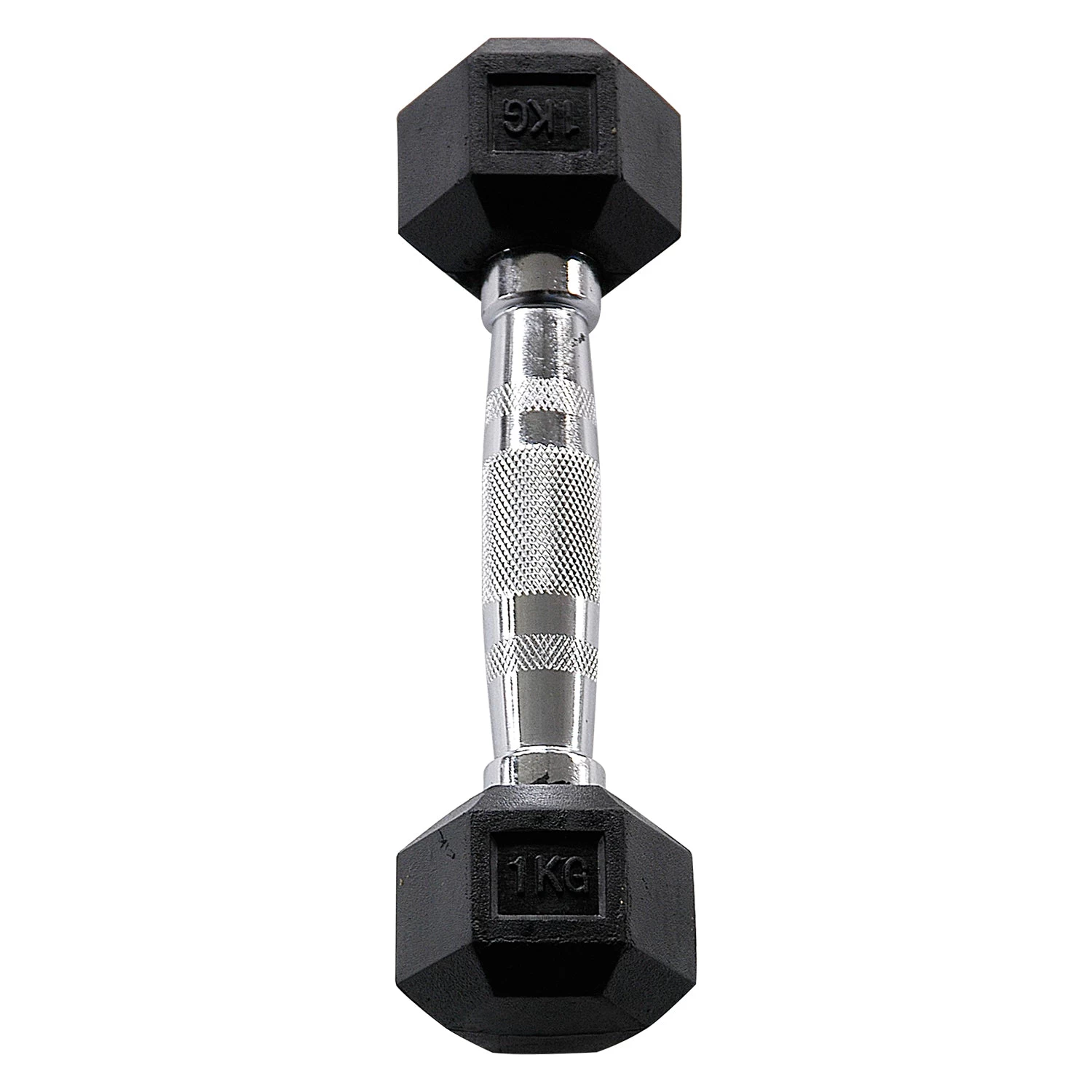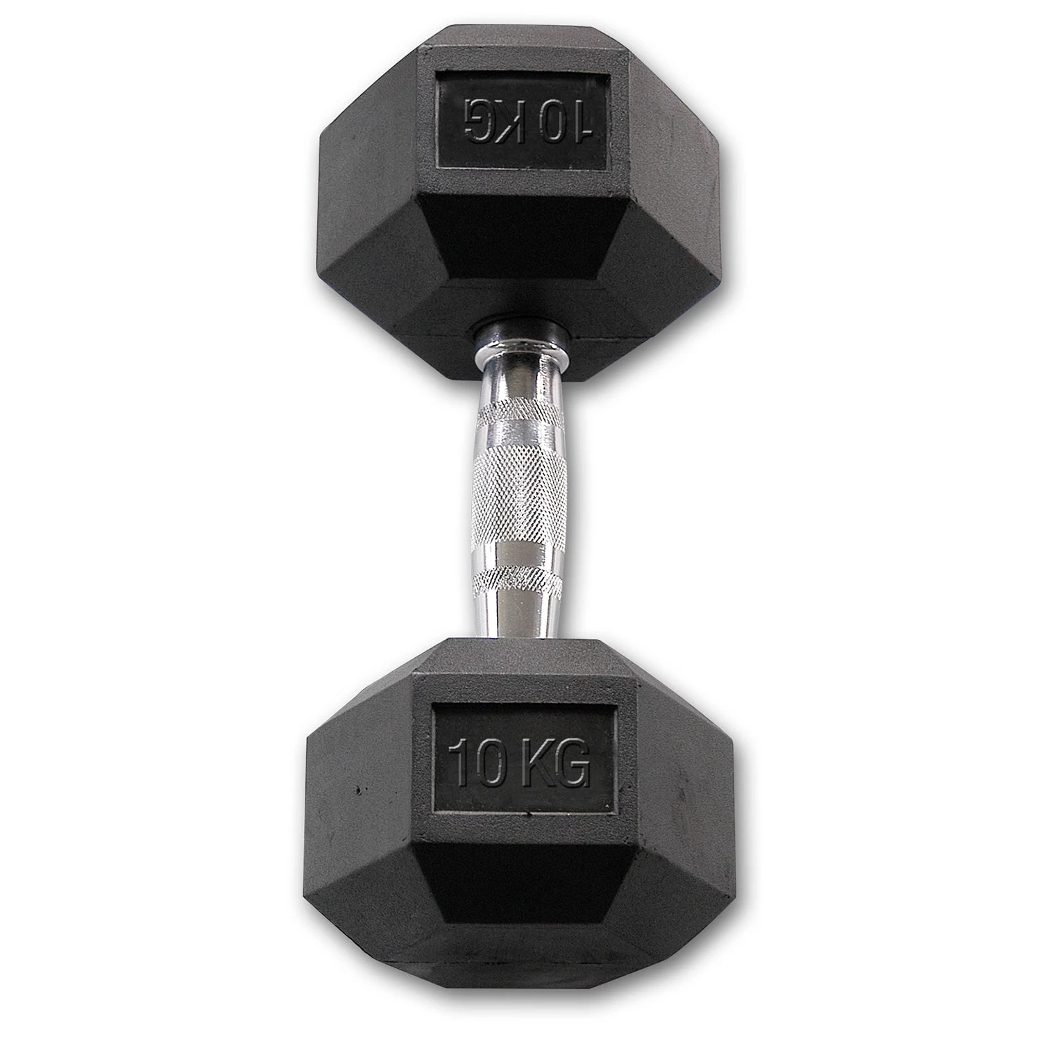 De hexagonale dumbbells bieden meer stabiliteit dan ronde dumbbells. Ze rollen niet over de vloer en kunnen veilig op elke vlakke ondergrond worden opgeborgen.