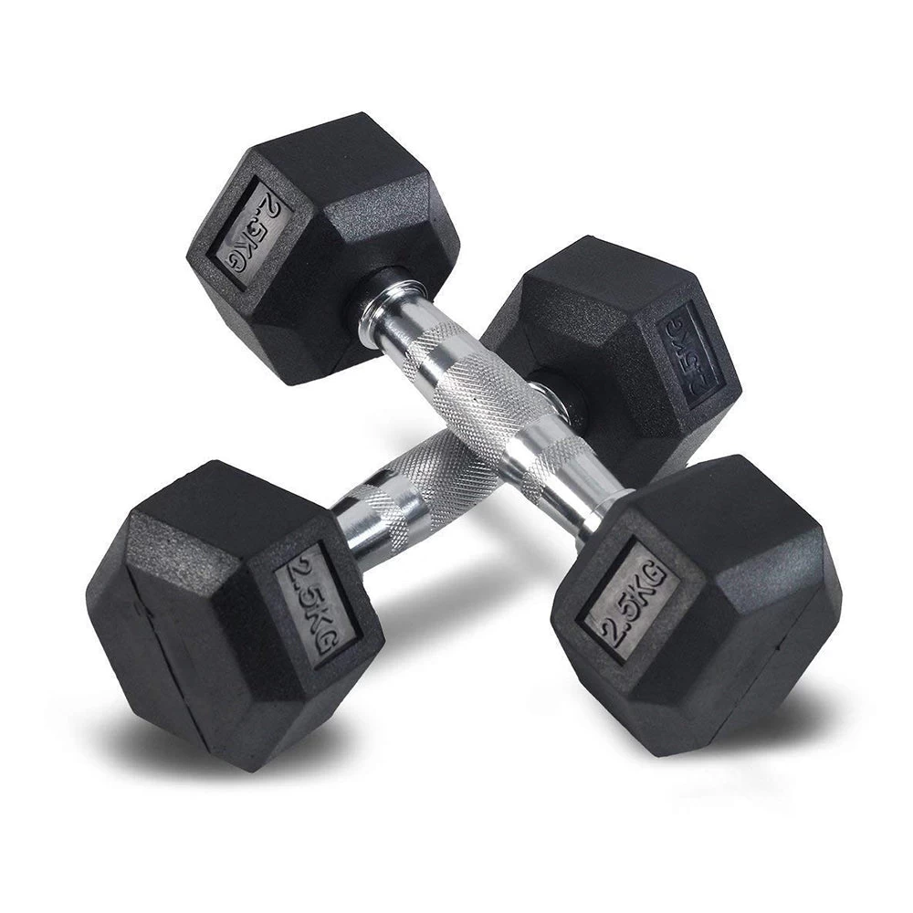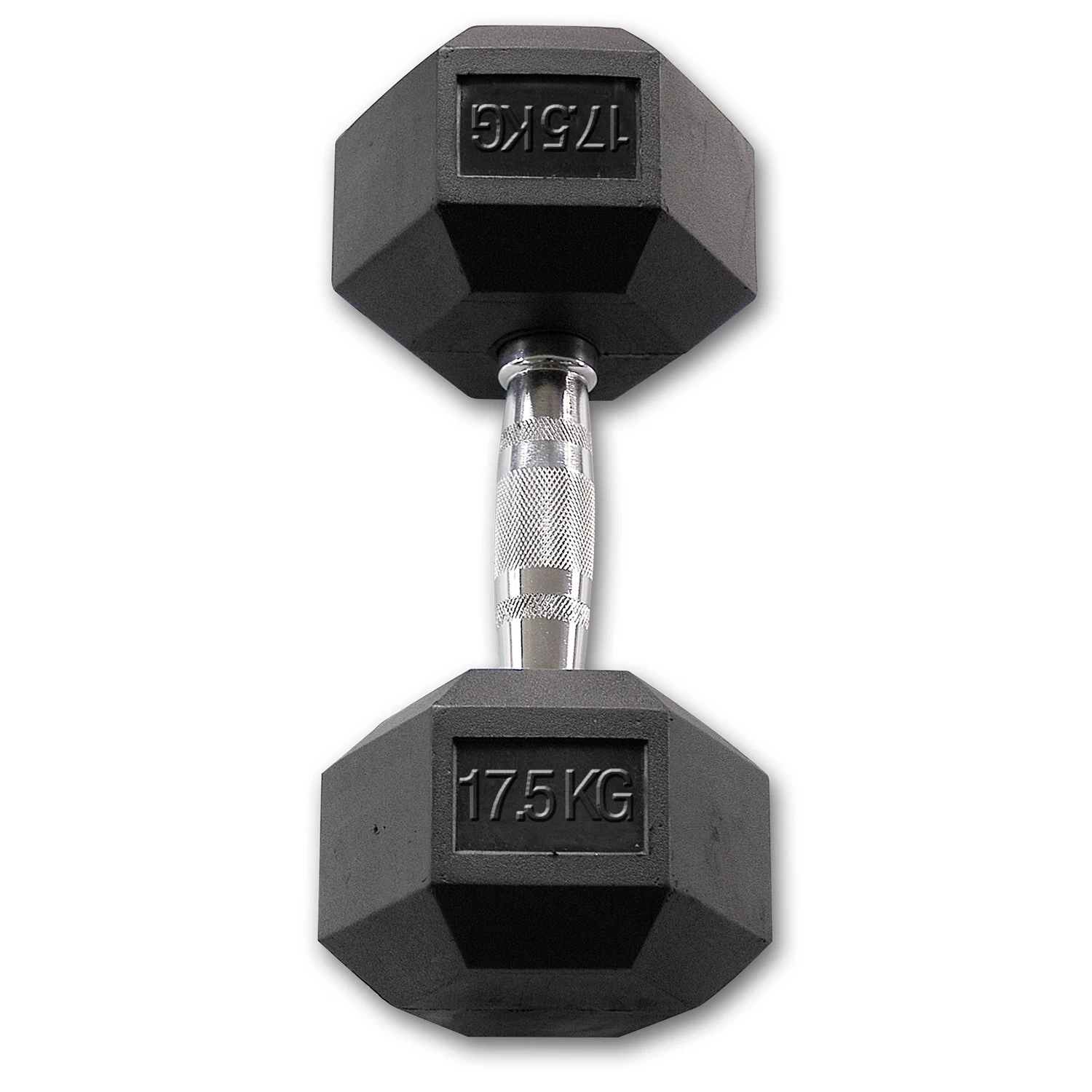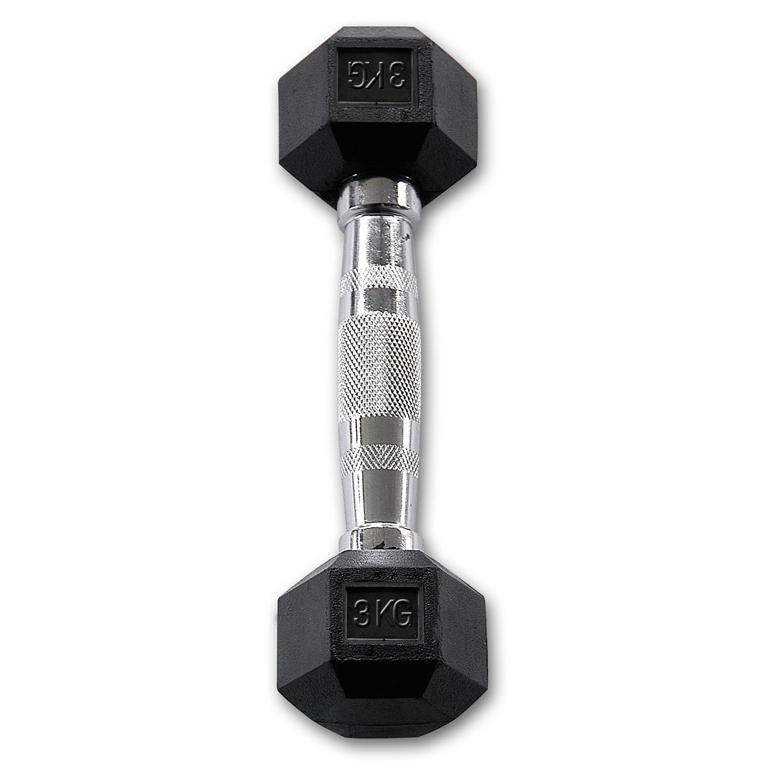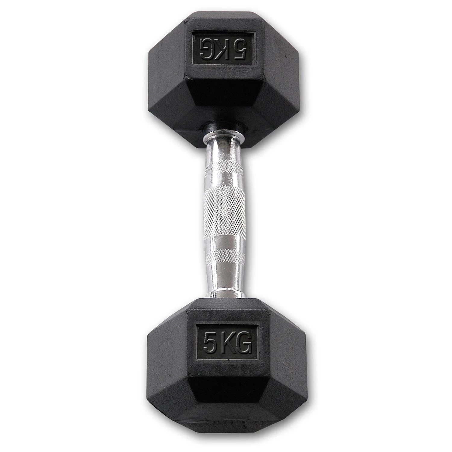De hexagonale dumbbells bieden meer stabiliteit dan ronde dumbbells. Ze rollen niet over de vloer en kunnen veilig op elke vlakke ondergrond worden opgeborgen.