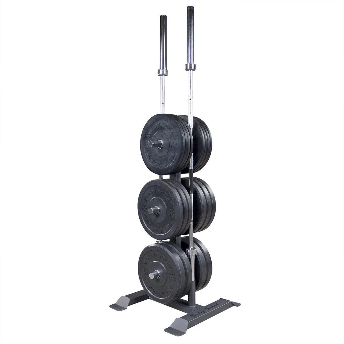 Als je het belangrijk vind om halterschijven en -stangen op te slaan en je trainingsruimte op orde te houden, is de Body-Solid Olympic Plate Tree & Bar Holder precies wat je zoekt! Dankzij het zeer sterk, stalen frame heeft het een capaciteit van maximum 450 kg!
