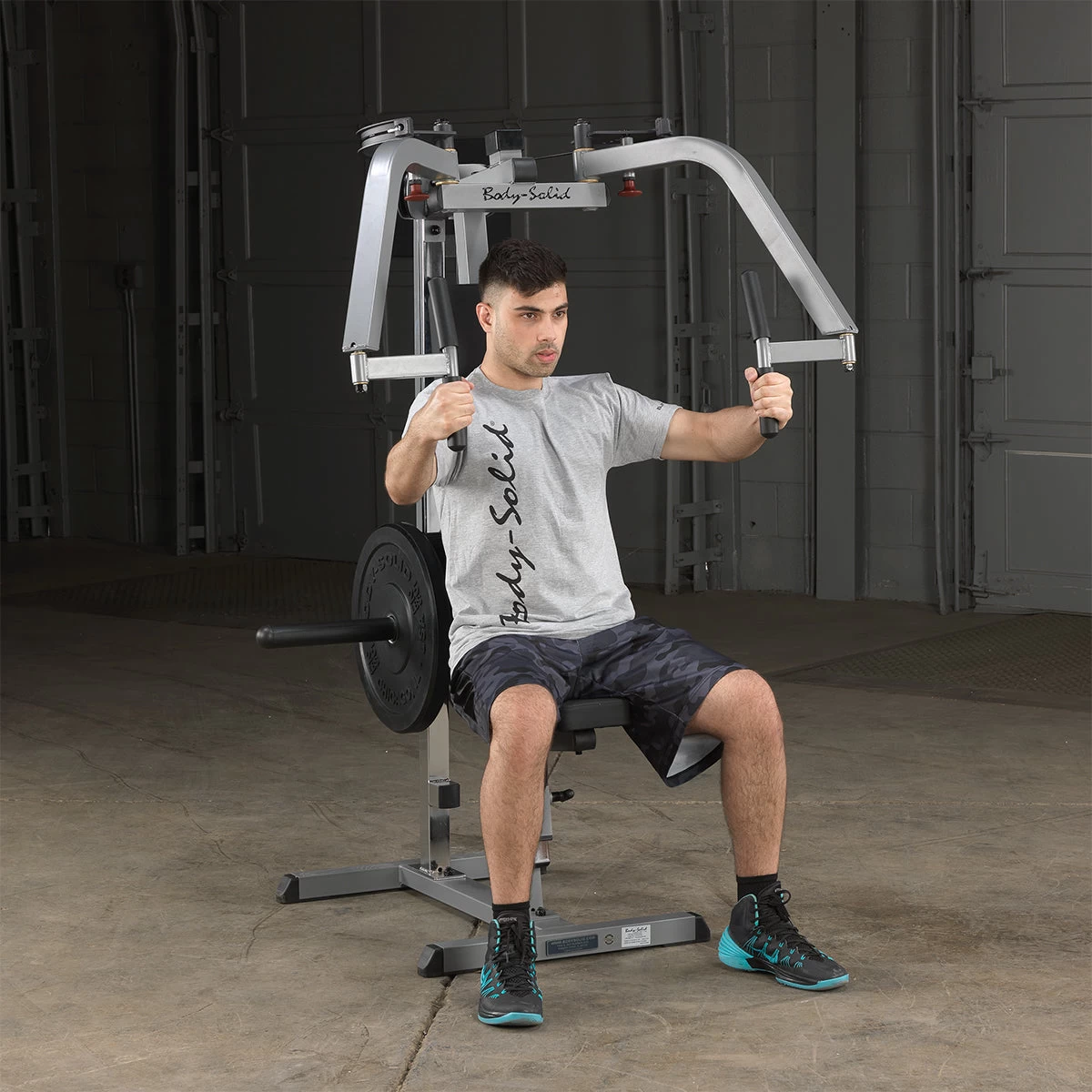 De Body-Solid Plate Loaded Pec Machine zorgt ervoor dat je een groot deel van je bovenlichaam traint. Je kan je rug, borst en schouders optimaal trainen met een diepe, volledige stretch. Met een hoog draagvermogen en een laag zwaartepunt biedt dit model een onberispelijk evenwicht tijdens intensieve bewegingen. Geschikt voor thuis- en commercieel gebruik.