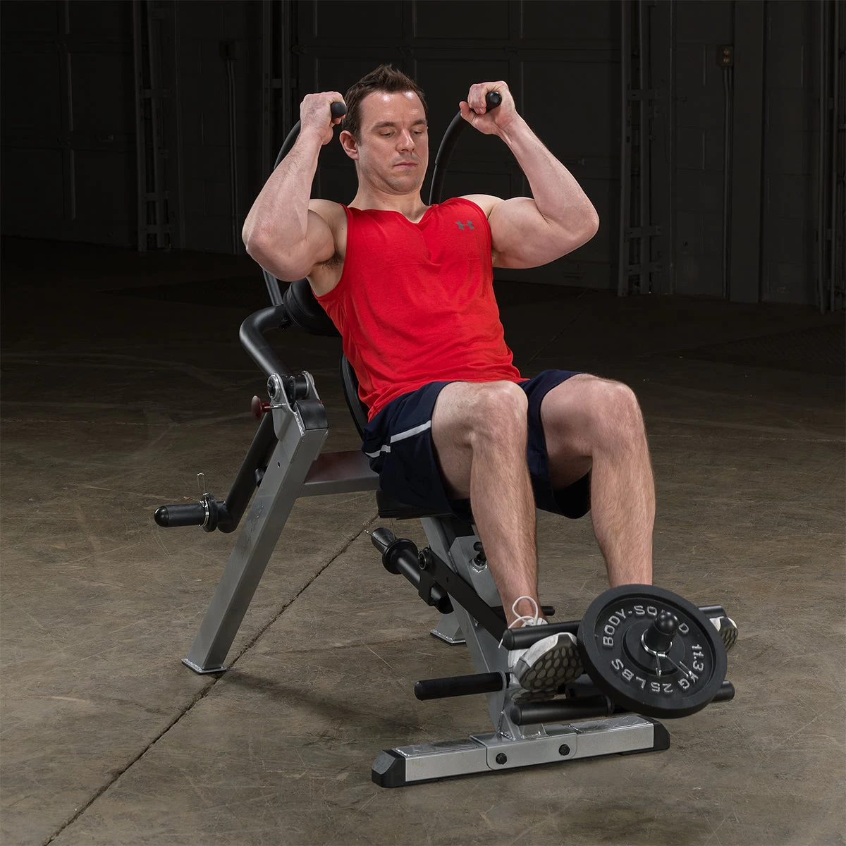 Met deze stevige Ab-trainer van Body-Solid kan je ab crunches en knee raises uitvoeren vanuit een biometrisch correcte positie.Â