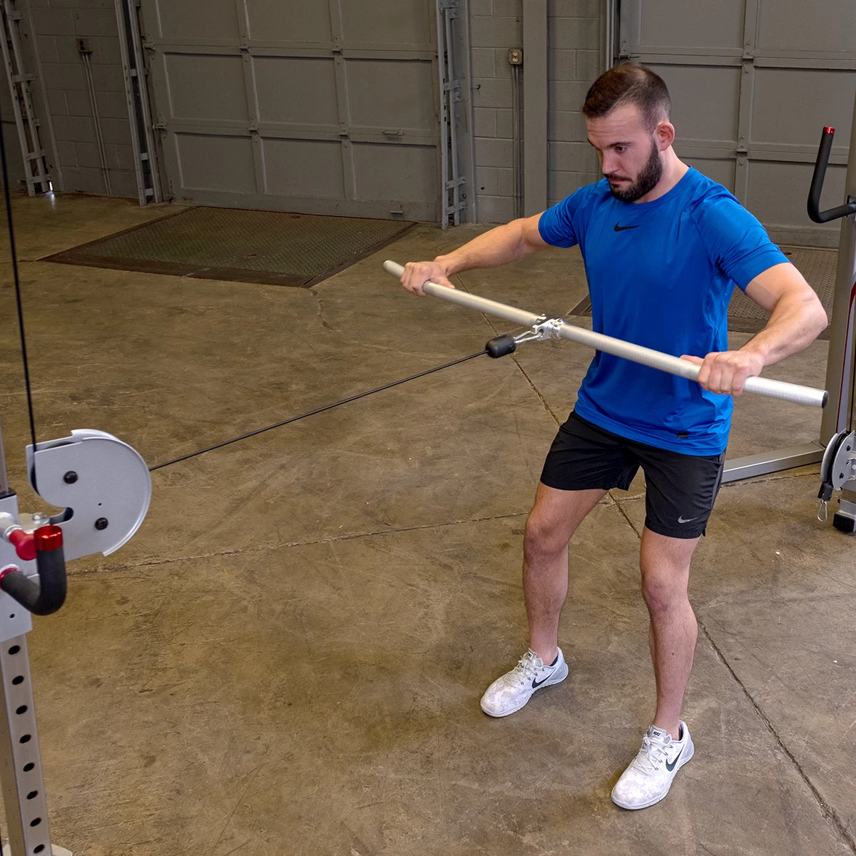 De Aluminium Lat Bar van Body-Solid Tools kan je aansluiten op tal van machines, waaronder de cable crossover. De Lat Bar is bedoeld om je bovenlichaam te trainen en is zeer geschikt voor je rugspieren. Het is gemaakt van 3 cm dik hoogwaardig aluminium, wat het accessoire super duurzaam maakt!