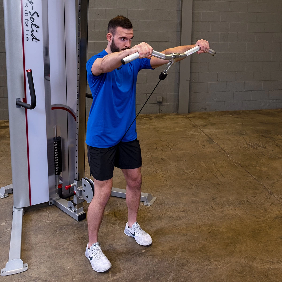 De Body-Solid Aluminum Curl Bar kan worden bevestigd aan elke home gym of kabel/pulley-gebaseerde gewichtsmachine en kan worden gebruikt om bijvoorbeeld curls en tal van andere oefeningen uit te voeren.