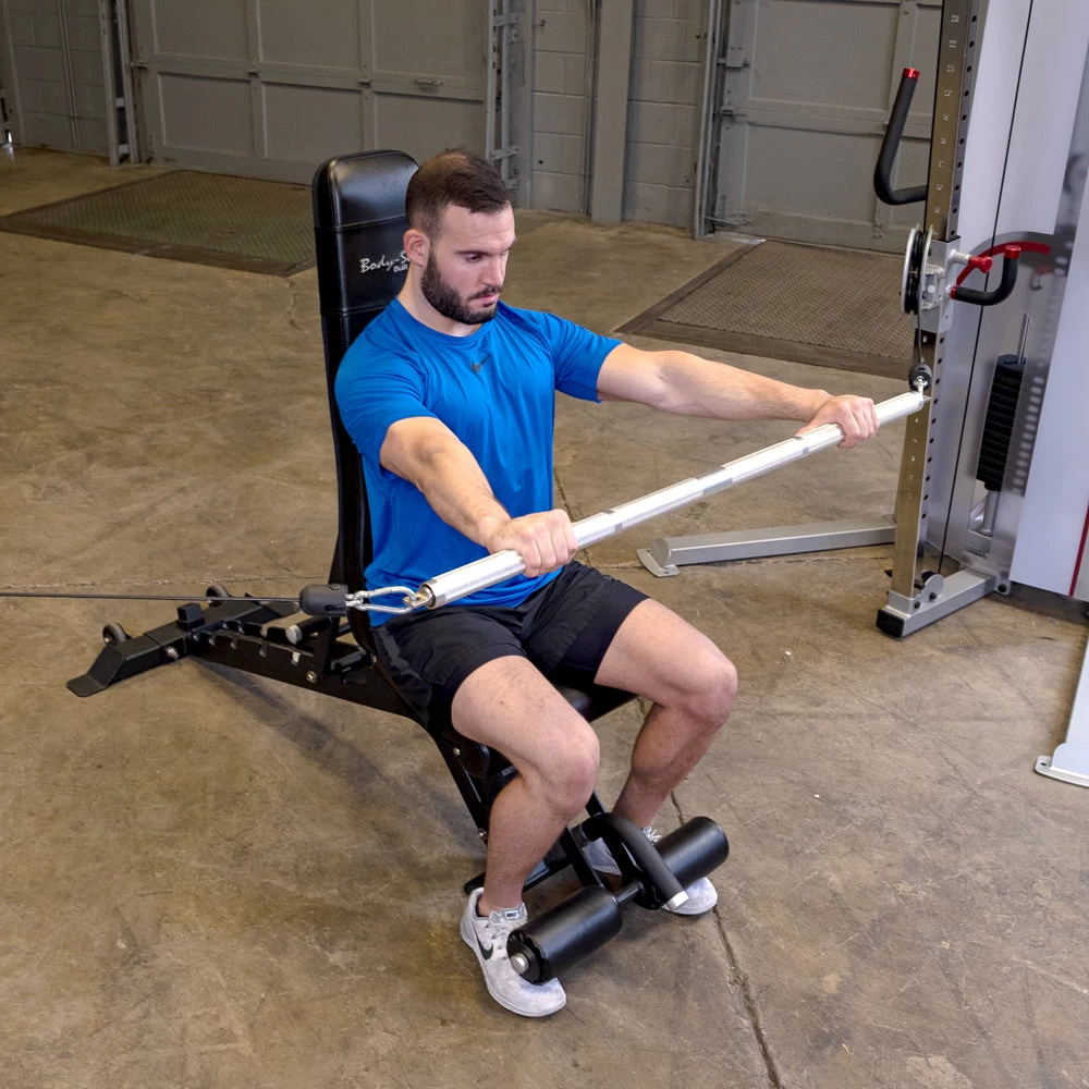 De bar is ideaal voor gebruik bij shoulder presses, biceps- en tricepsoefeningen, lat pulldowns, bench/incline/decline press en squats.