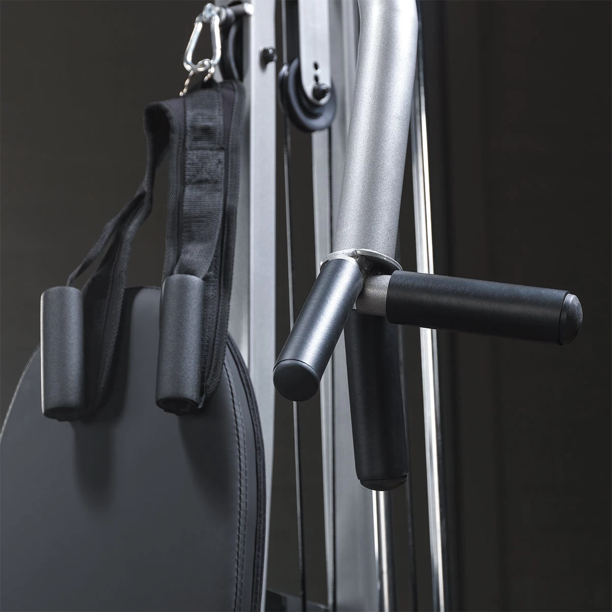 De nieuwe Powerline Home Gym biedt je eenvoudig en efficiënte workouts op een klein oppervlak. De gym komt voor 90% klaar voor gebruik uit de doos. Alle hoogwaardige nylon katrollen en stalen kabels tot 1000 kg weerstand, werden reeds bevestigd in het fabriek.