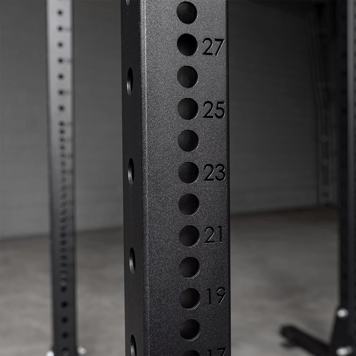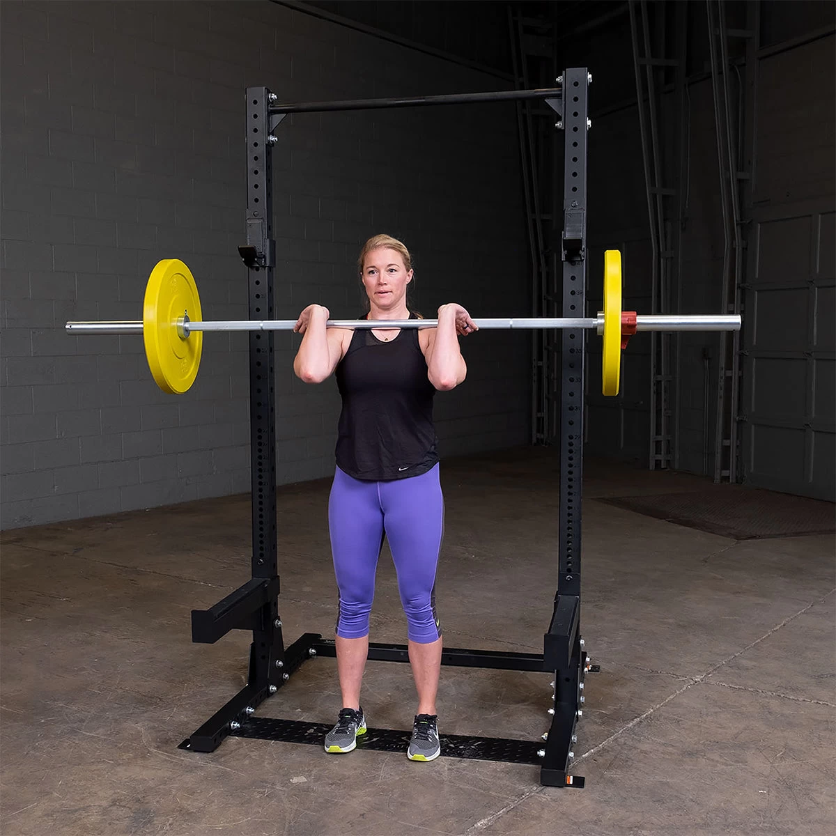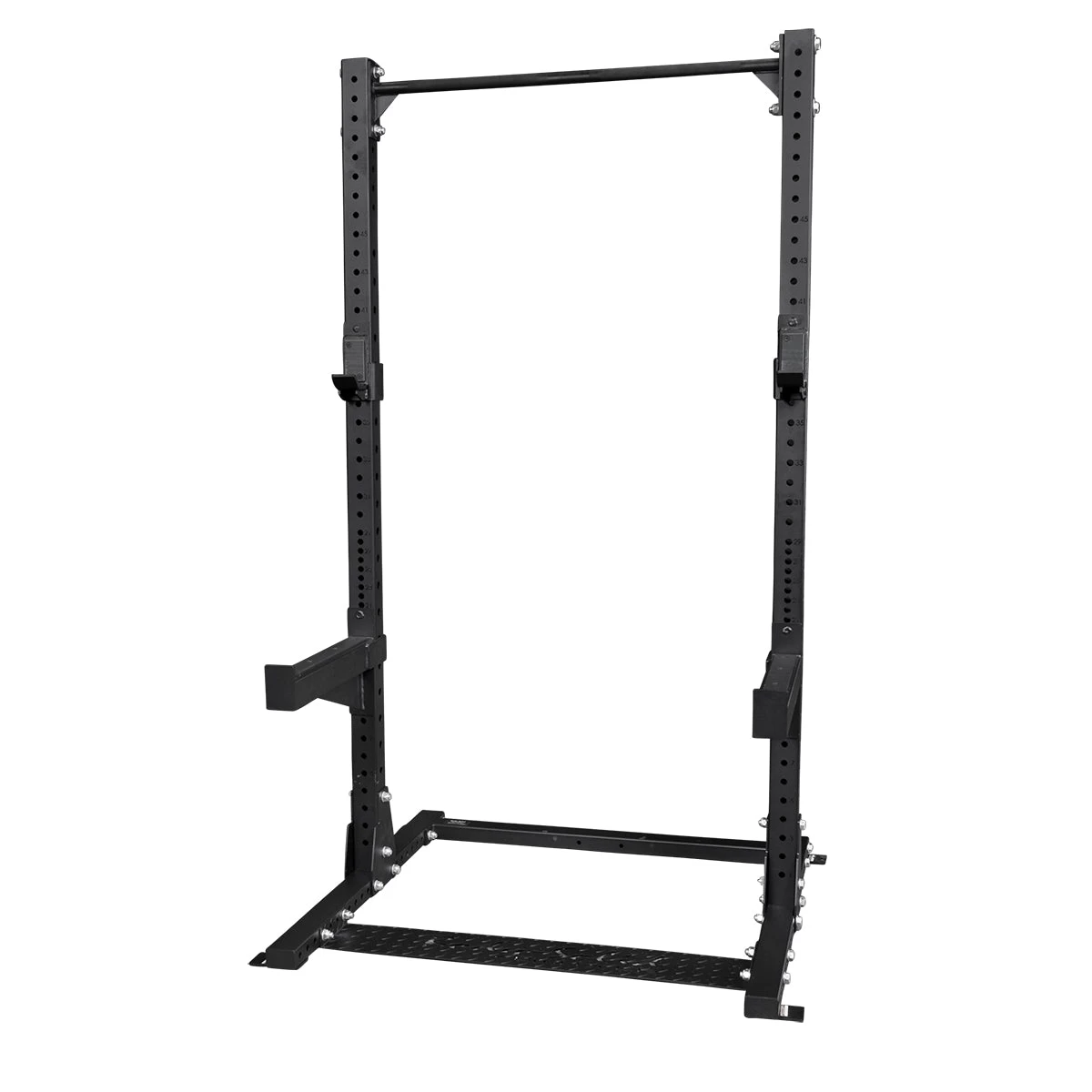 Het Half Rack is daarnaast voorzien van premium J-cup liftoffs, safety spotter arms en een geïntegreerde chinning bar voor pull-ups en chin-ups. De afstand tussen de bevestigingsgaten voor de safety spotter bedraagt 25 mm, waardoor sporters steeds de perfecte stretch kunnen kiezen, zonder hun veiligheid in het gedrang te brengen.