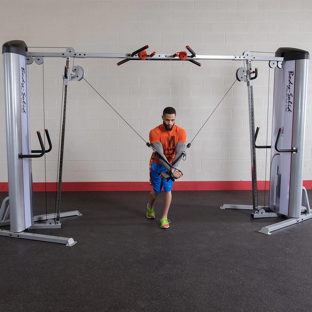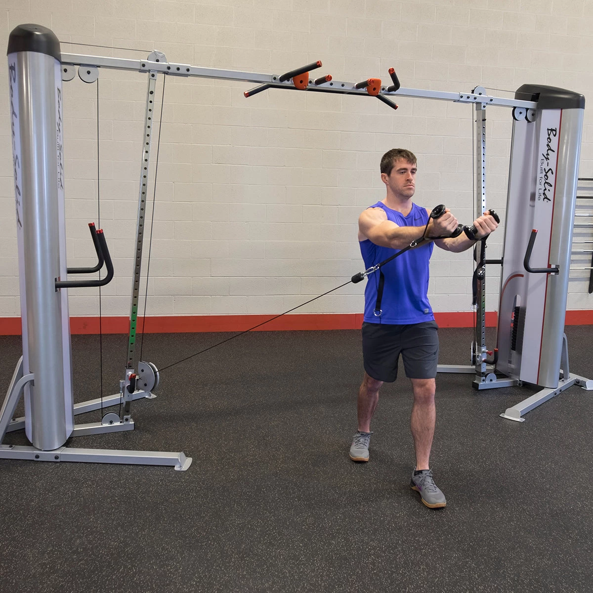 - Grote handgrepen aan beide zijden van de kabelkolommen voor ondersteuning en stabilisatie tijdens unilaterale trainingsoefeningen