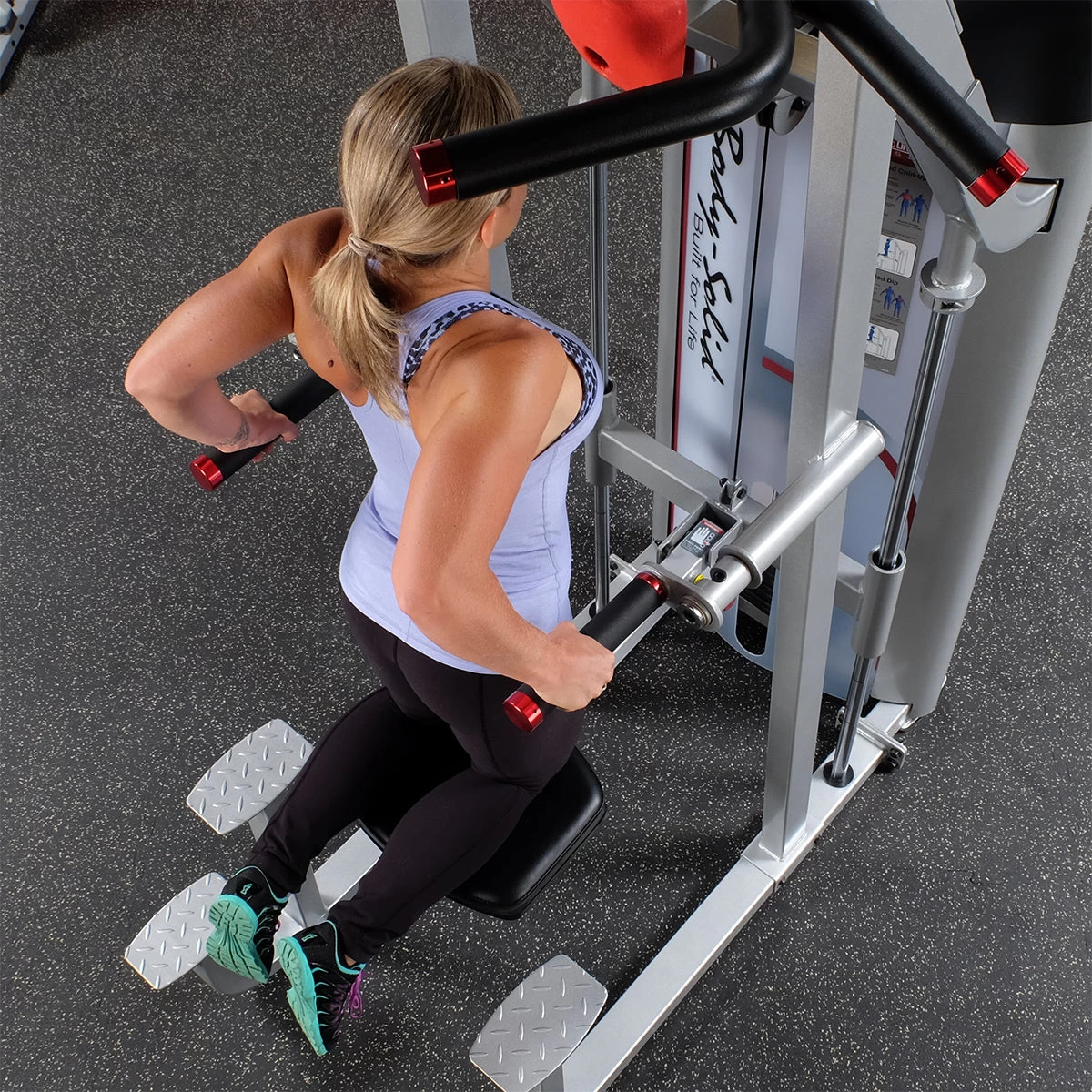 Deze Chin Dip Machine S2ACD is voorzien van een gewichtsstapel van 105 kg en beschikt over 2 brede lat pull-up grips, een chin up bar en exclusieve klimgrepen, die je gemakkelijk weg kan draaien voor meer trainingsruimte. Het kniekussen is eenvoudig op te klappen als je je hele lichaamsgewicht wil gebruiken. De handige opstapjes zorgen voor een gemakkelijke toegang.