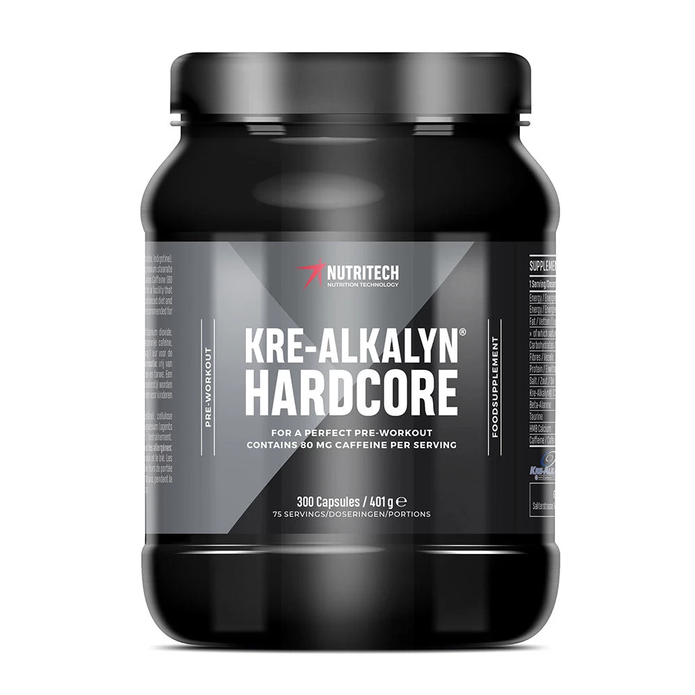 Ingrediënten: Kre-Alkalyn®, beta-alanine, capsule (gelatine; kleurstof: titanium dioxide, indigotine), microcrystalline cellulose (vuller), taurine, HMB calcium-zout, watervrije caffeïne, magnesium stearaat & silicium dioxide (anti-stolling agents).
