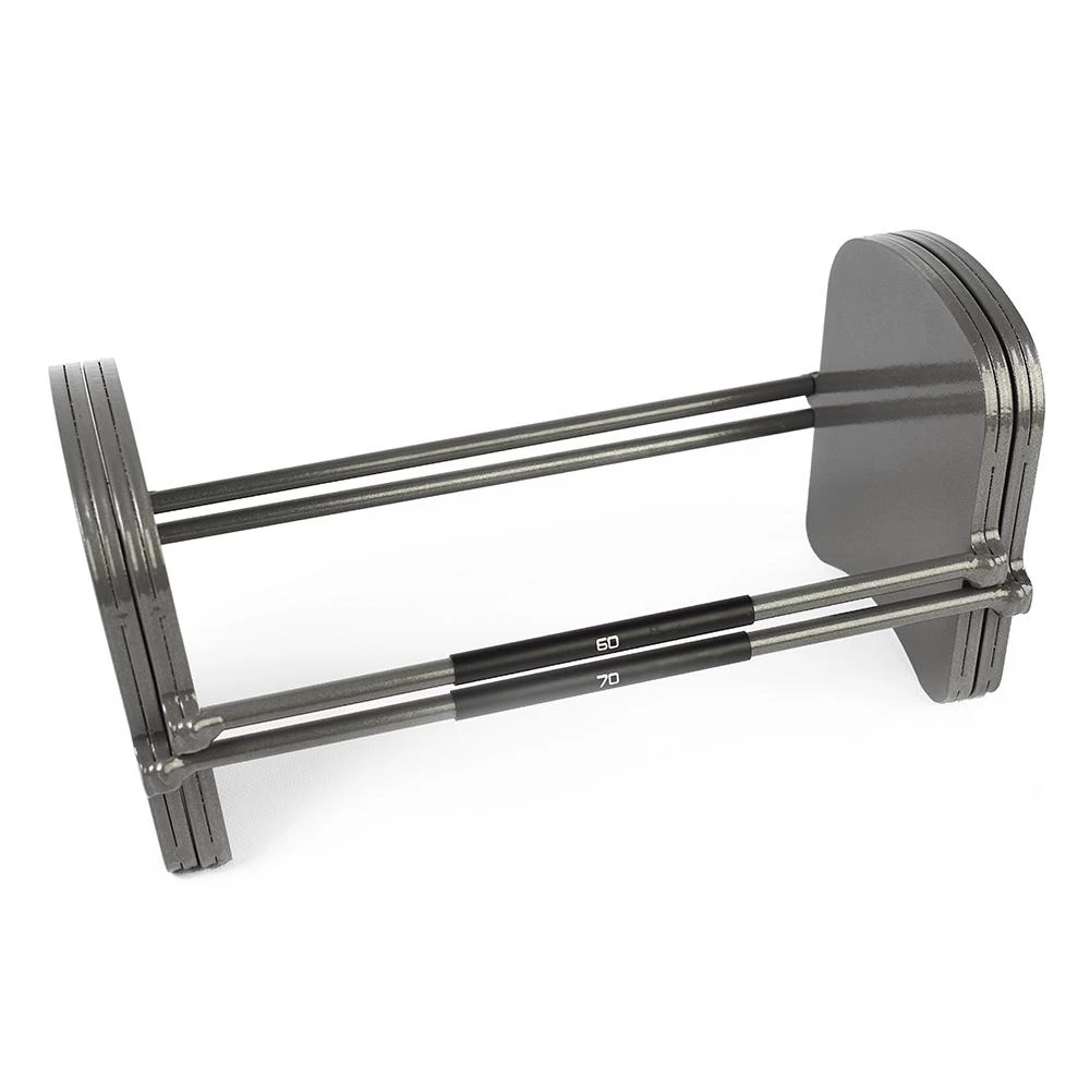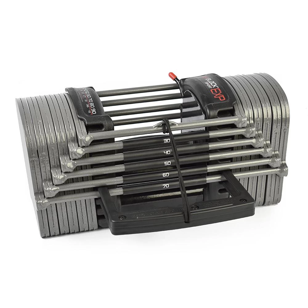 - Deze EXP 5-70 halterset is een uitbreiding (fase 2) van de PowerBlock Sport EXP 5-50. De twee dumbbells zijn verstelbaar van 2,2 tot 31,7 kg in stappen van 2,2 kg. De PowerBlock Sport EXP 5-70 komt overeen met 22 paar dumbbells (= 714,5 kg vrije gewichten).