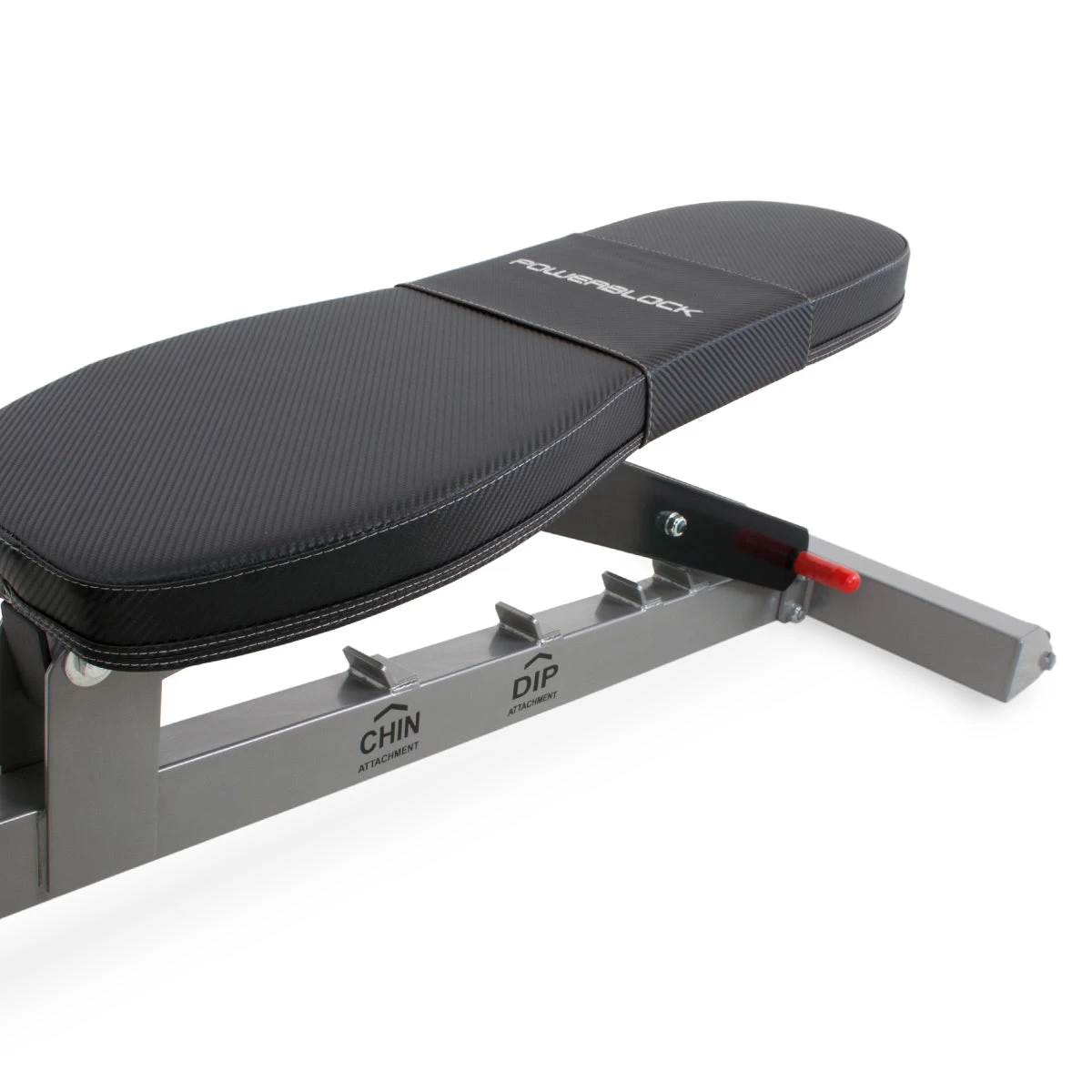 Het bankje kan je verstellen in 5 verschillende posities (incline/decline)en kan tot 250 kg dragen. Dus je hoeft je nooit zorgen te maken dat je te zwaar bent met de Powerblocks in je handen! Het kussen is gemaakt van carbon-look vinyl en is gemakkelijk te reinigen.