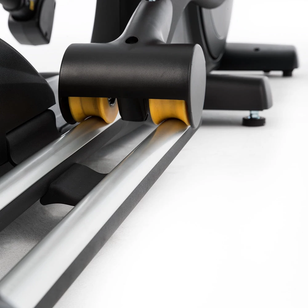 De geavanceerde Sole Fitness crosstrainer E95 geeft je alle mogelijkheden om je gewenste trainingsresultaat te bereiken. Het toestel heeft een grote paslengte en een zeer vloeiende elliptische beweging, zelfs bij verhoogde weerstand. Deze vloeiende natuurlijke beweging wordt mogelijk gemaakt door vier wieltjes die over dubbele rails glijden, zowel voorwaarts als achterwaarts.