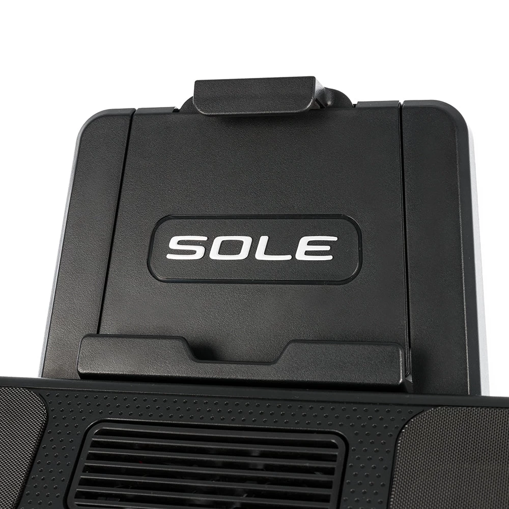 - Unieke kenmerken: ingebouwde luidsprekers (MP3 compatibel), Bluetooth luidspreker, Bluetooth HR, Bluetooth-technologie met SOLE Fitness ™ APP compatibel met FitBit, iHealth, MyFitness Pal, USB-oplaadpoort en verstelbare/verwijderbare tablethouder, ventilator