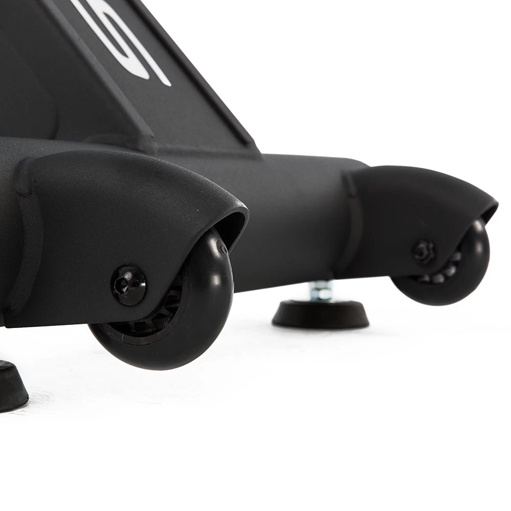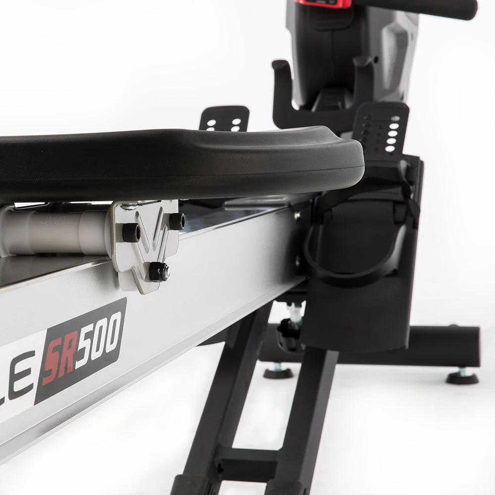De SOLE SR500 heeft een lange aluminium rail en is geschikt voor zowel de kleinere als de grote sporter tot een lichaamslengte van 200 cm. Dankzij het opvouwbare ontwerp en de transportwielen is de SR500 gemakkelijk te verplaatsen en op te bergen wanneer hij niet wordt gebruikt.