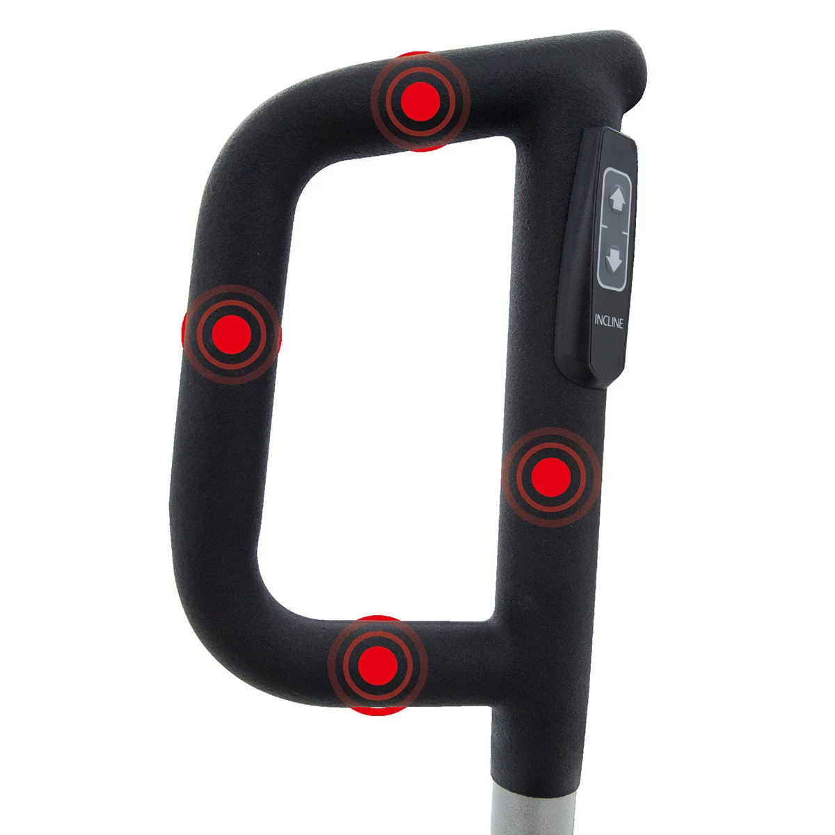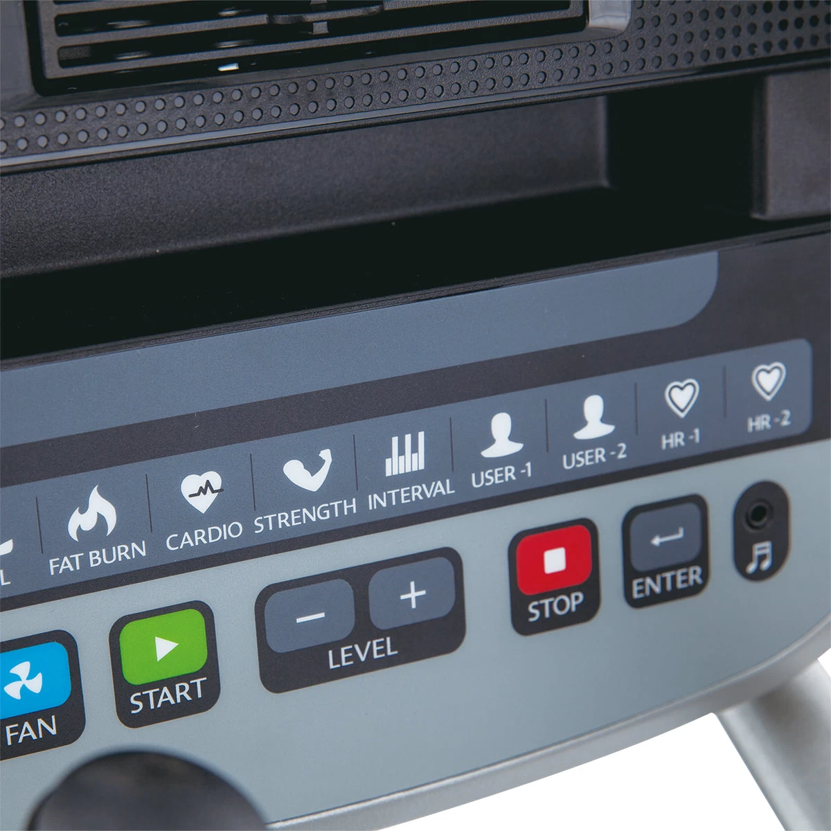 - De handgrepen zijn voorzien van handige druktoetsen waarmee u de weerstand en helling kunt bepalen, zonder uw handen van de grepen te halen.