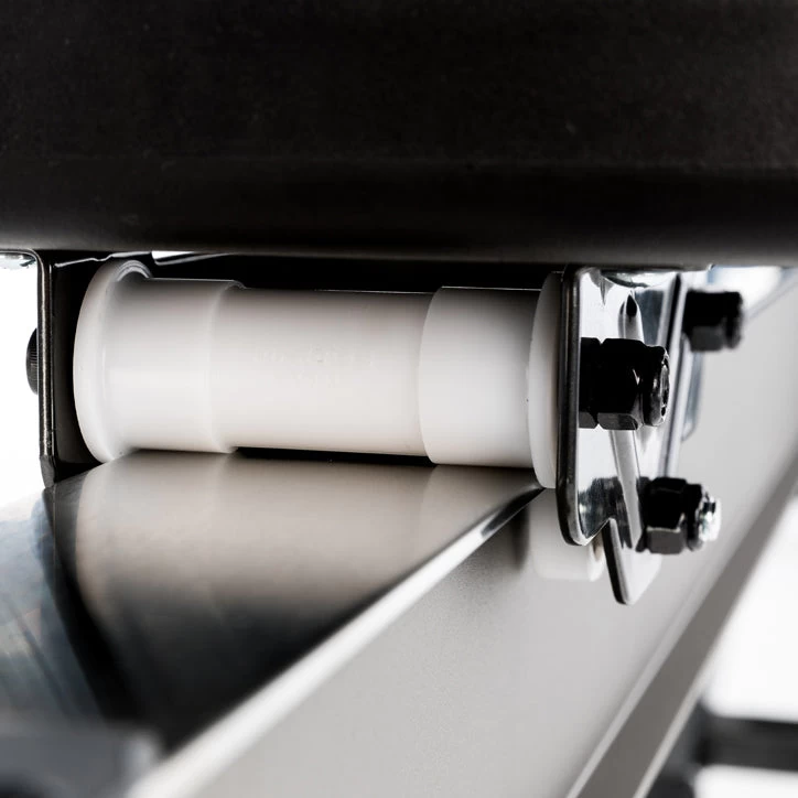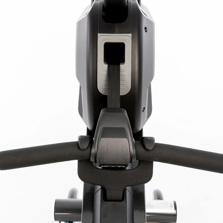 Om de training niet te hoeven onderbreken kan je het weerstandsniveau aanpassen via een draadloos afstandsbedieningssysteem in de trekhendel.