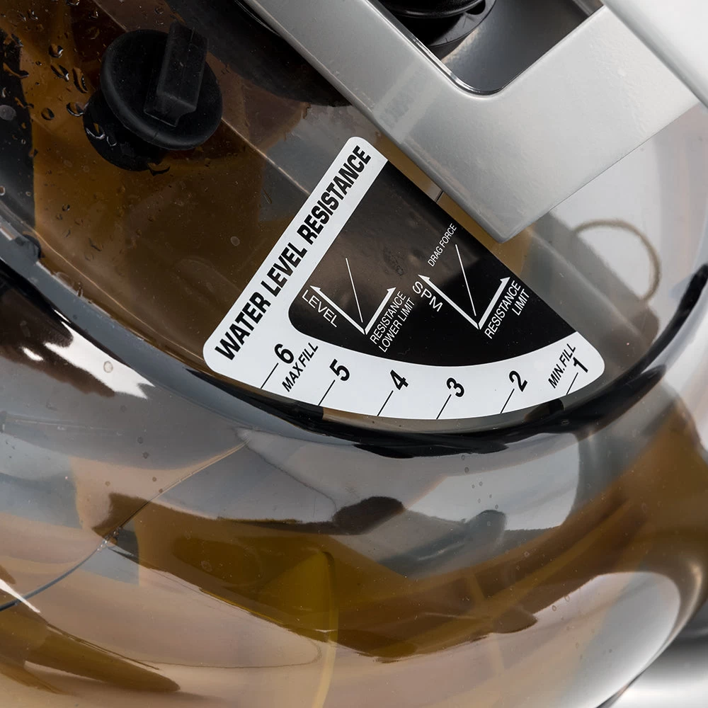 De watertank biedt tot 6 weerstandsniveaus en is geplaatst in een hoek van 45 graden om een groter weerstandsbereik te creëren in vergelijking met andere roeiers op de markt.